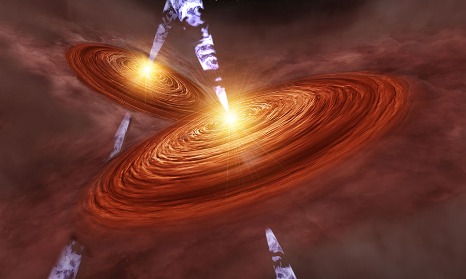 由东京大学和国立天文台的学者组成的研究团队,通过ALMA望远镜观测双子原始恒星“VLA 1623A”时,发现其中原始恒星在喷出不规则的分子流,离解开连星诞生之谜又迈进一步。