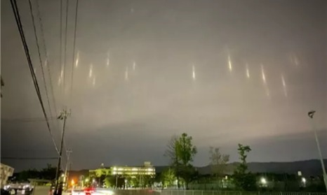 5月6日的晚上,在日本福井县的夜空中,出现了几十枚闪着光的柱子。这些光柱肉眼可见地悬挂在人们头顶之上,让外星人和UFO爱好者迎来了一场狂欢。