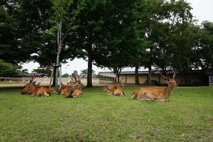 · 奈良公园内的树林,有所谓的“鹿摂食線”,鹿摂食線大约2米高,也就是鹿举起前脚、仰头吃树上树叶的高度。2米高以下的树叶被吃光了,所以树枝树叶都整齐保持在2米以上的高度,远看犹如一直线,因此被称为“鹿摂食線”。