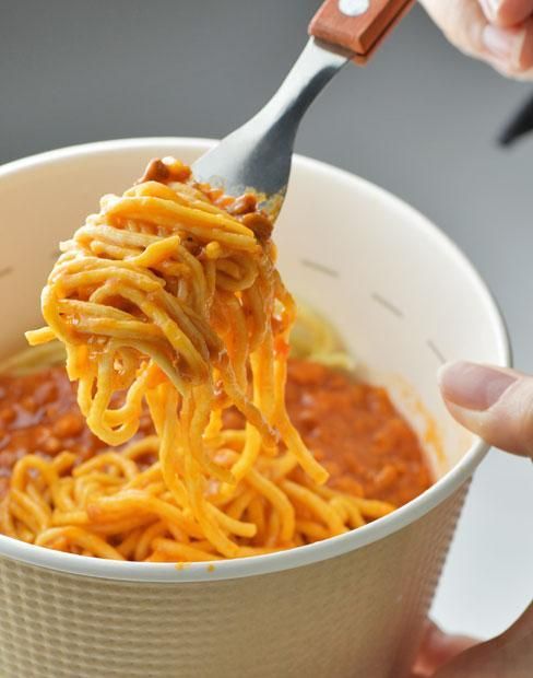 这款面的口味有博洛尼亚风味、热那亚风味、阿拉伯风味3种,与普通的意大利风味酱相似。其中,与这款独特面条最搭的就是热那亚风味酱,口感和弹牙筋道的意面或者生意面不同,感觉和经常放在便当旁边的意大利实心细面条很像,口感还行。外食或者自己做饭,想要摄取完全的营养相对困难,但选择完全食物的话,就可以减少操心一日三餐的麻烦。