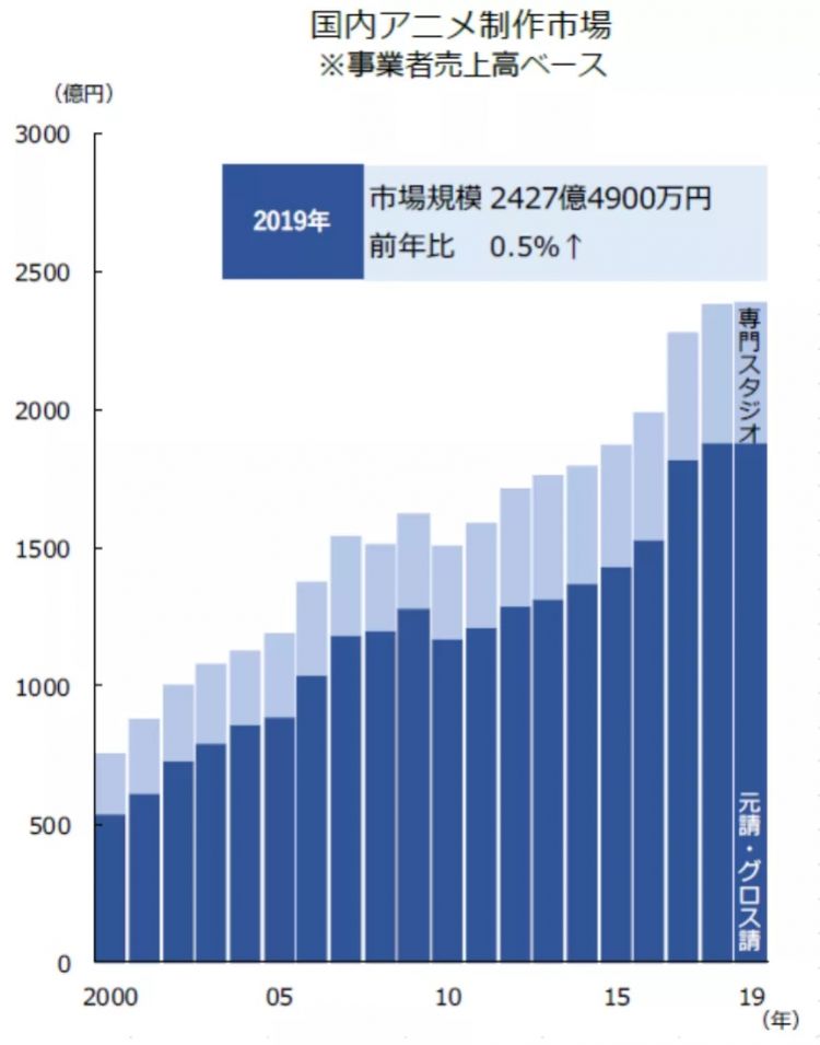 进入2010年代后,虽然动画制作业界的规模急速扩大,但2019年的成长速度却出现了急刹车。
