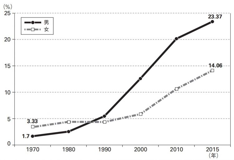 截至2020年,日本有1/4的男性终身未婚,1/6的女性终身未婚,这个比例还在节节攀升。筋野茜所在的共同社索性提出“婚难时代”一词,来记述这个现象。