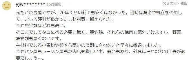 “我以前是章鱼烧店主,大约20年前就已经不算便宜了。